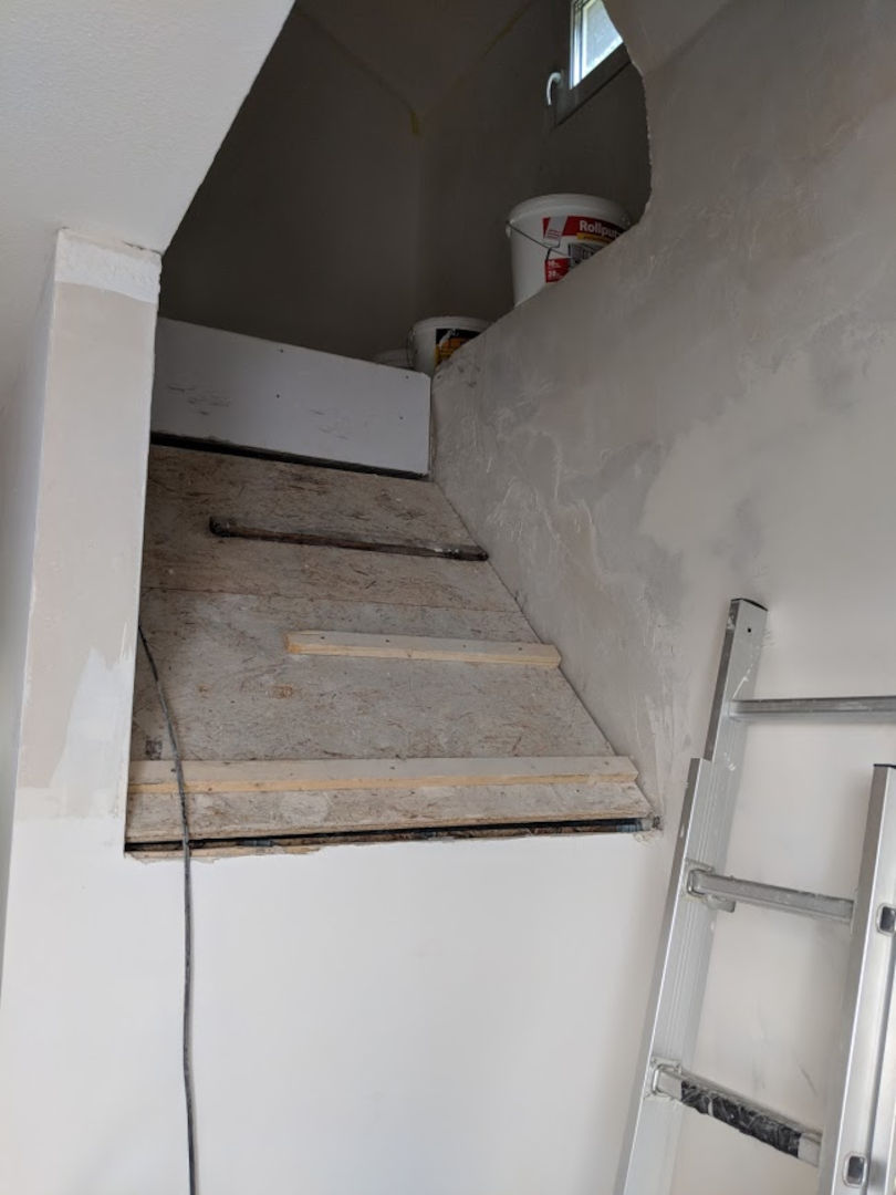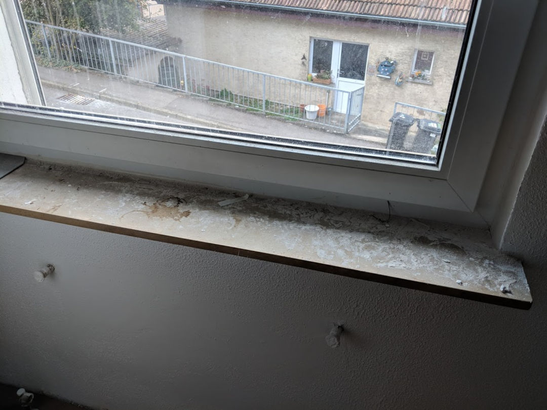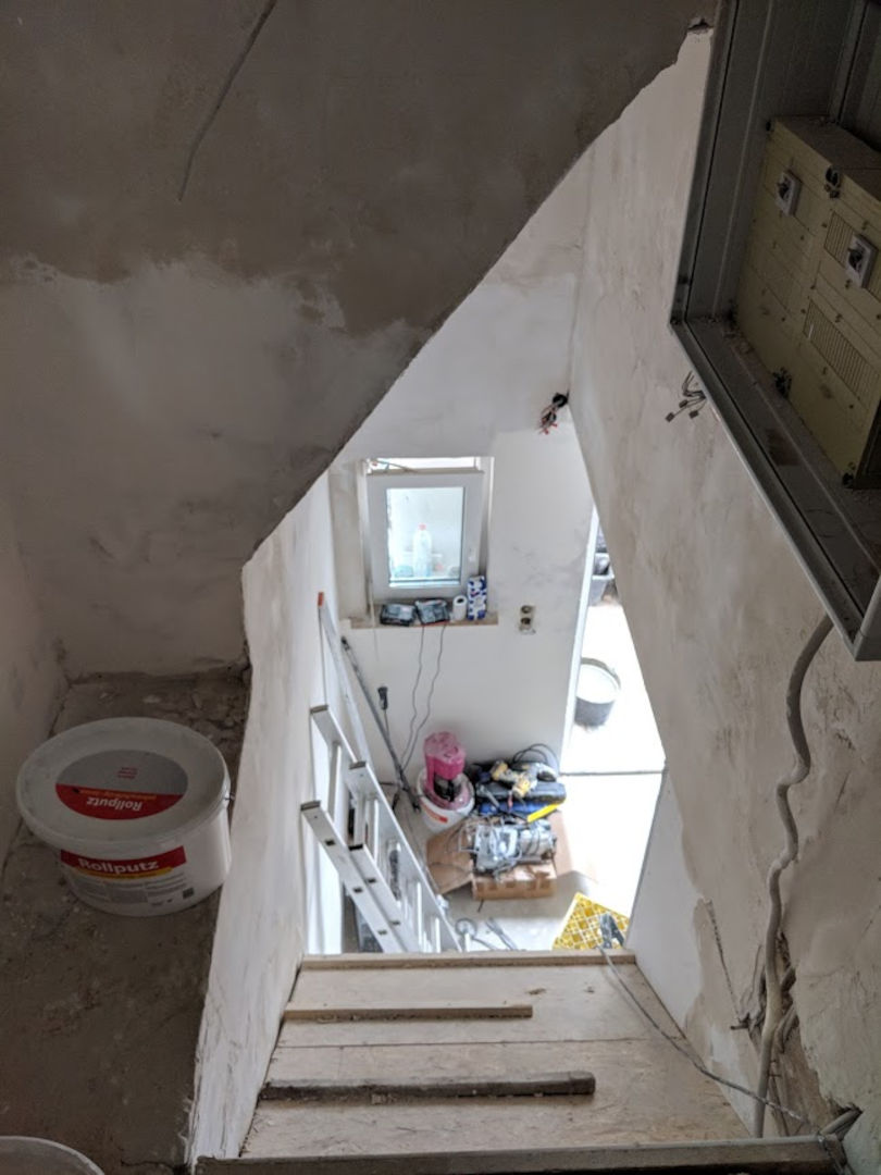 Alle Materialien, die er uns vorenthalten hatte und wir schon einmal gezahlt hatten, mussten wir nochmal kaufen: Böden, 2 Treppen, 6 Türen, Putz, große Klimaanlage, ...