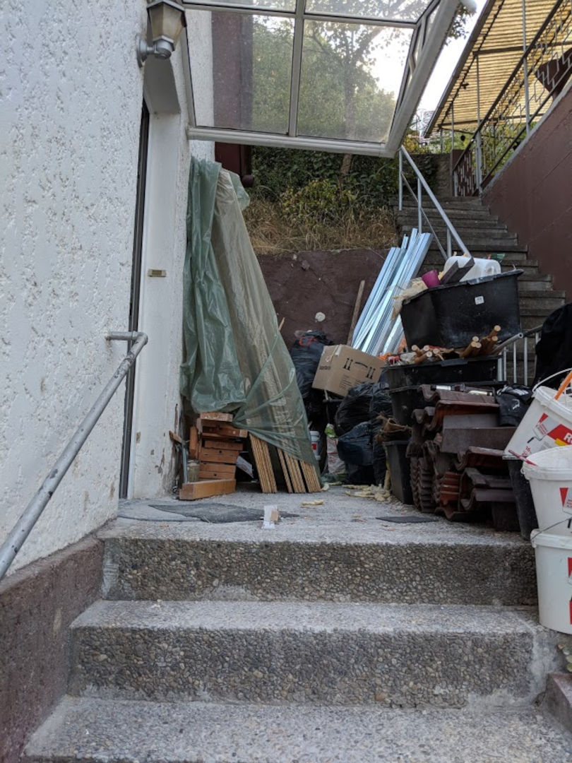 Hinterlassen hatte er einen riesigen Müllberg, Essensreste, Dreck und alles was man sich vorstellen kann. Insgesamt haben wir 5 Tonnen!! Müll entsorgen müssen zuzüglich nochmal ca.